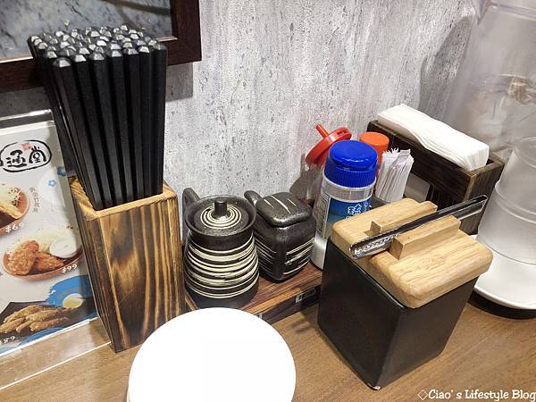 主要佐料有辣油跟白芝麻,冰開水的部分則是放置於桌上,自行承裝。